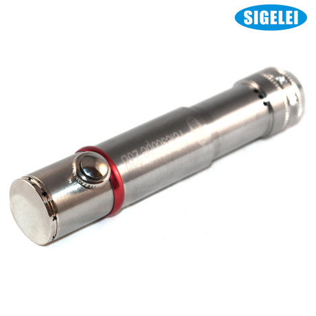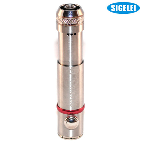 Sigelei 23B Telescope Mod is a full stainless steel mechanical mod with the ability to telescope multiple battery sizes. Rocket style design with a red ring to gives it a distinct style. This mod is machined from 20/24 aircraft grade aluminum. Mod 23B will fit battery sizes as small as 18350 and as big as 18650. The 23B mod gives a comfortable and well grip feel when vaping. The vape button can be used by easily pressing the button which also features a locking mechanism. A solid mechanical mod made from stainless steel gives this vape a robust and strong look and feel. Venting holes on the bottom ring gives security guard in case of overheating of the battery. Mod 23B can fit all 510 atomizer tanks.